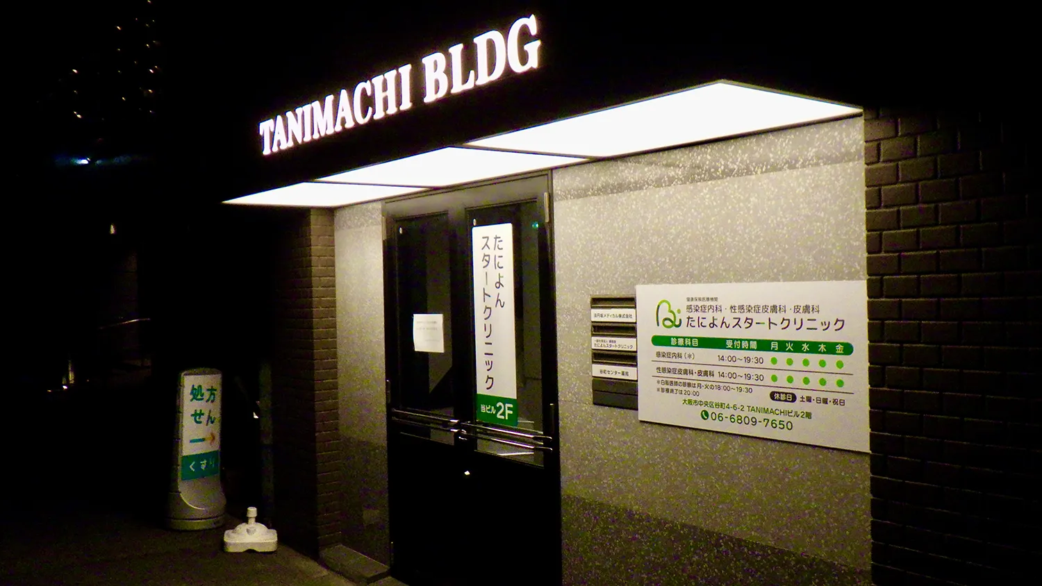 2025 年1月29日19時過ぎ、大阪メトロ「谷町四丁目駅」を出ると、あたりはすっかり夜になっていました。7(または8)番出口から数分歩くと、診療所の看板が見えてきます。